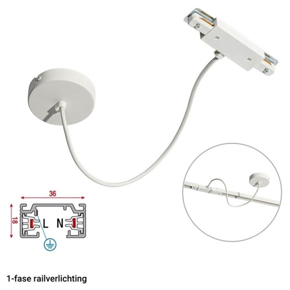 Dieser mittlere Anschluss für 1-Phasen-Schienensysteme ist ideal, wenn sich der Anschlusspunkt in der Mitte des Raums befindet. So können Sie das Schienensystem auch sauber in der Mitte aufhängen.