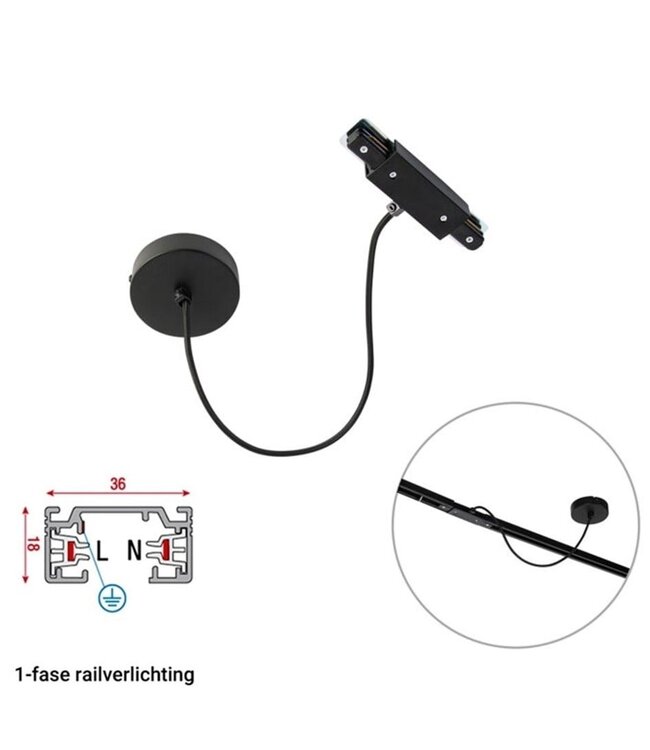 Dieser Mittelanschluss für 1-Phasen-Schienensysteme ist ideal, wenn sich der Anschlusspunkt in der Mitte des Raums befindet. So können Sie das Schienensystem auch sauber in der Mitte aufhängen.