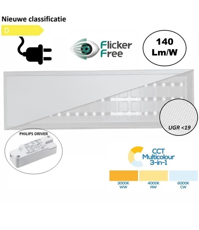 Die leistungsstarken SMD-LED-Lichtquellen versorgen das LED-Panel mit nicht weniger als 3900 Lumen (140 lm/W), was einer Lichtleistung entspricht, die einer herkömmlichen 2x 36 W TL-Leuchte entspricht oder diese sogar übertrifft. Der Abstrahlwinkel von 120º macht es zu einem perfekten Beleuchtungselement für die allgemeine Beleuchtung in allen Arten von Räumen.
