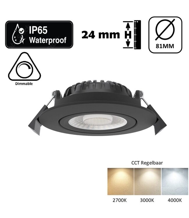 Der überarbeitete Luxus-LED-Spot ist jetzt mit einer CCT-Schaltfunktion ausgestattet. Mit dem CCT-Schalter können Sie den Luxus-Einbau-Spot auf die Lichtfarben 2700 K Extra Warmweiß, 3000 K Warmweiß und 4000 K Neutralweiß einstellen. Der Einbau-LED-Spot Luxe benötigt eine Einbauhöhe von nur 24 mm über Ihrer Gipskartonplatte. Dadurch ist dieser Einbau-LED-Spot überall einsetzbar. Dank der IP65-Norm können diese Einbau-LED-Spots auch in Badezimmern oder Feuchträumen verwendet werden.