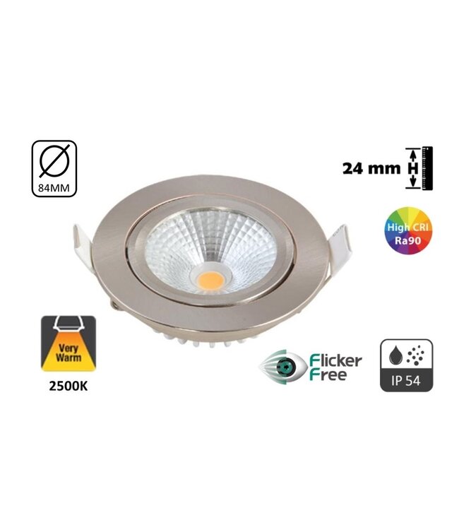 Dieser komplett eingelassene LED-Spot 5w 2500K Extra warmweiß ist ein sehr einzigartiger LED-Spot. Der eingelassene LED-Spot 5w ist nur 24mm hoch. Aus diesem Grund kann dieser LED-Einbaustrahler überall eingesetzt werden. Dank des IP54-Standards können diese LED-Einbaustrahler auch in Badezimmern oder Nassräumen eingesetzt werden.