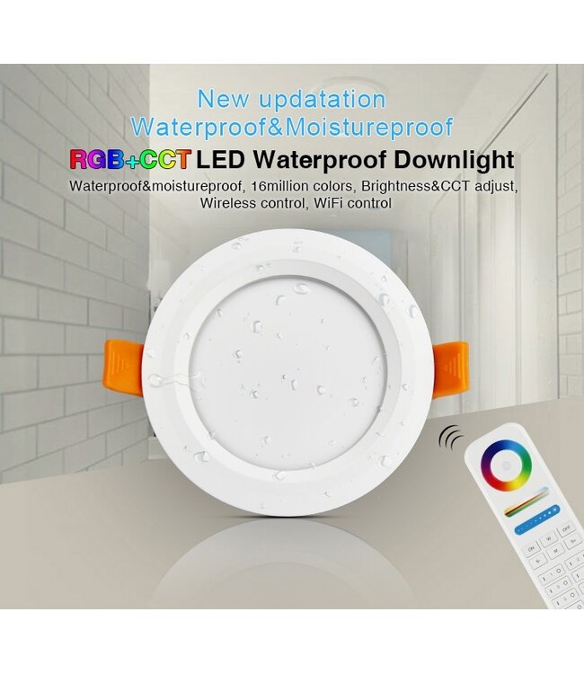 Einzigartiger Mi-Light LED-Downlighter 6w mit RGB- und CCT-Funktion. Hat ein spritzwassergeschütztes Gehäuse nach IP54 Lesen Sie mehr.