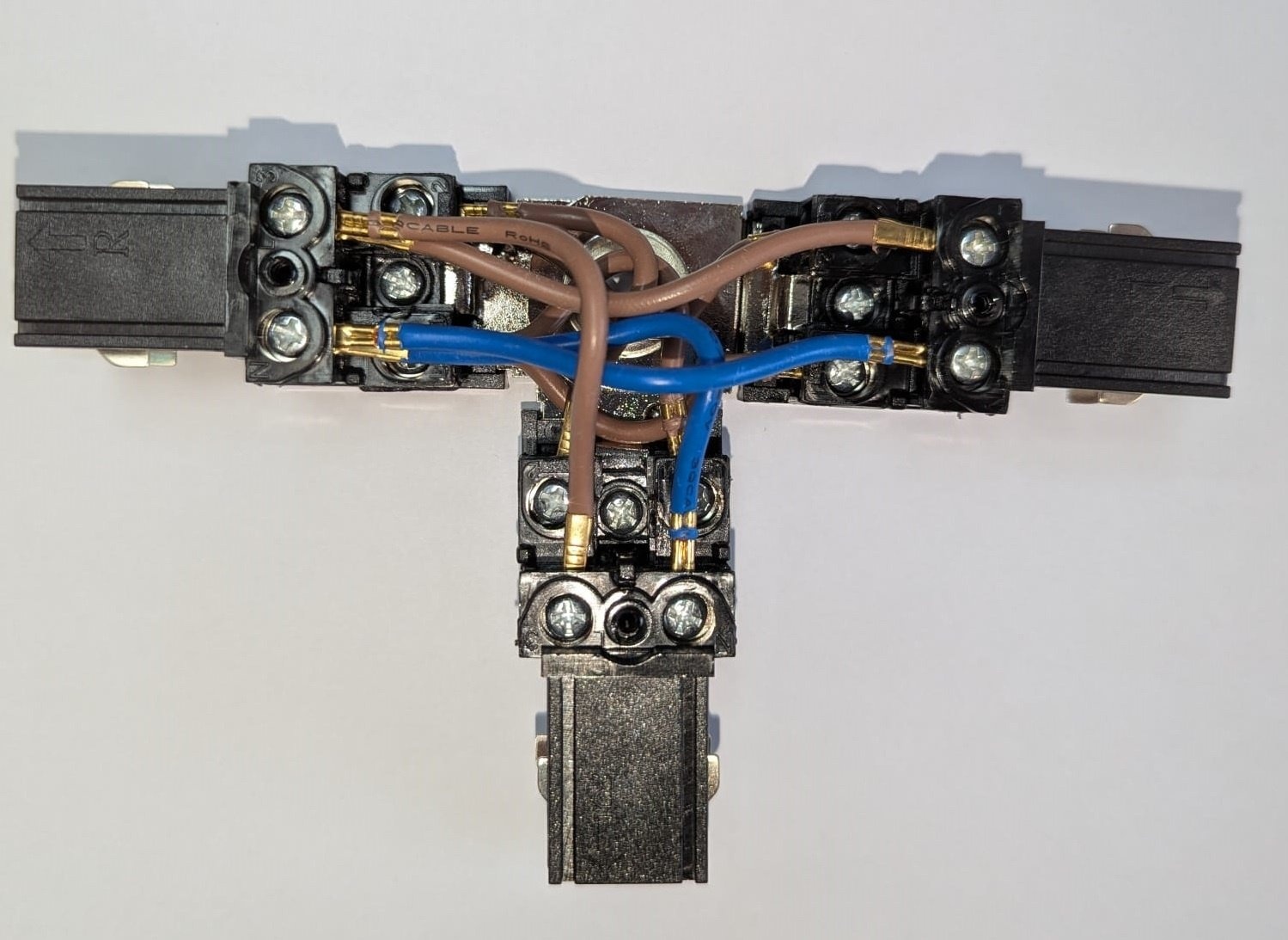 Dieser universelle 3-Phasen-T-Verbinder kann sowohl für Innenleitungen als auch für Außenleitungen verwendet werden. Es ist möglich, den Winkel um 90 Grad zu drehen, wodurch der Leitungsanschluss anders verläuft.