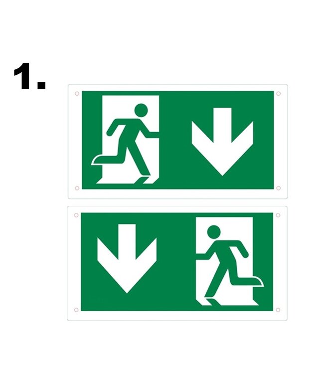 Wählen Sie hier Ihren Satz von Einzelpiktogrammen mit eindeutigen Pfeilanzeigen für Einbau- und Aufbaunotbeleuchtung.