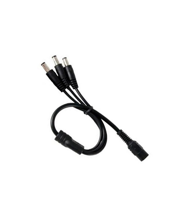 Dieses Verlängerungskabel für monochrome LED-Streifen hat 1x Buchse auf der einen und 3x Stecker auf der anderen Seite. Geeignet zum Anschluss von 3 LED-Streifen an 1 Stromversorgung.