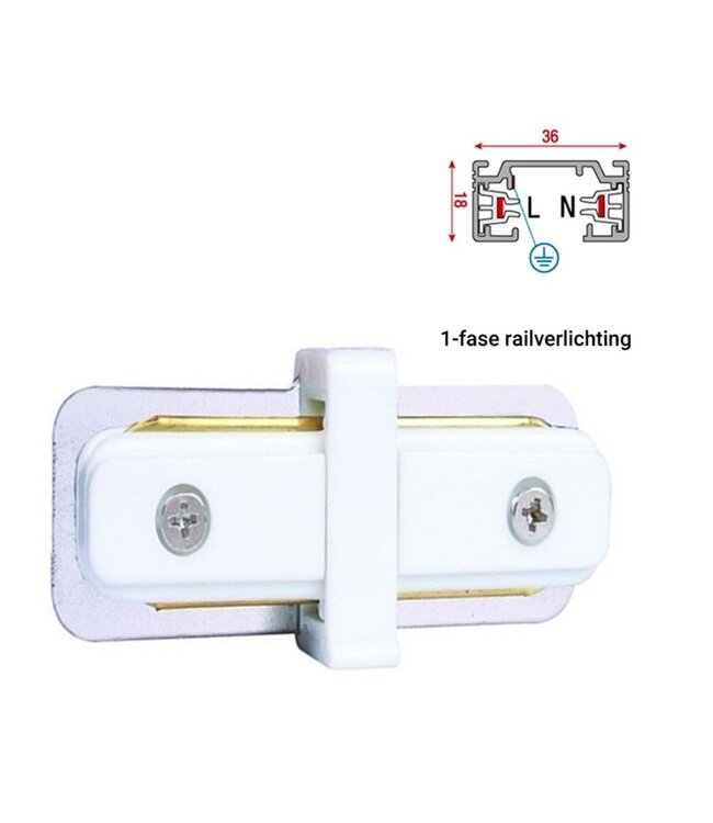 1 Fase Rail 2 wire Koppelstuk Recht Wit