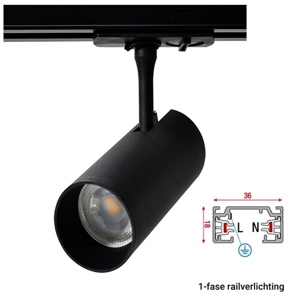 Een voordelige LED oplossing voor rail systemen. Geschikt voor gebruik in alle soorten 1 fase 2 wire railsystemen