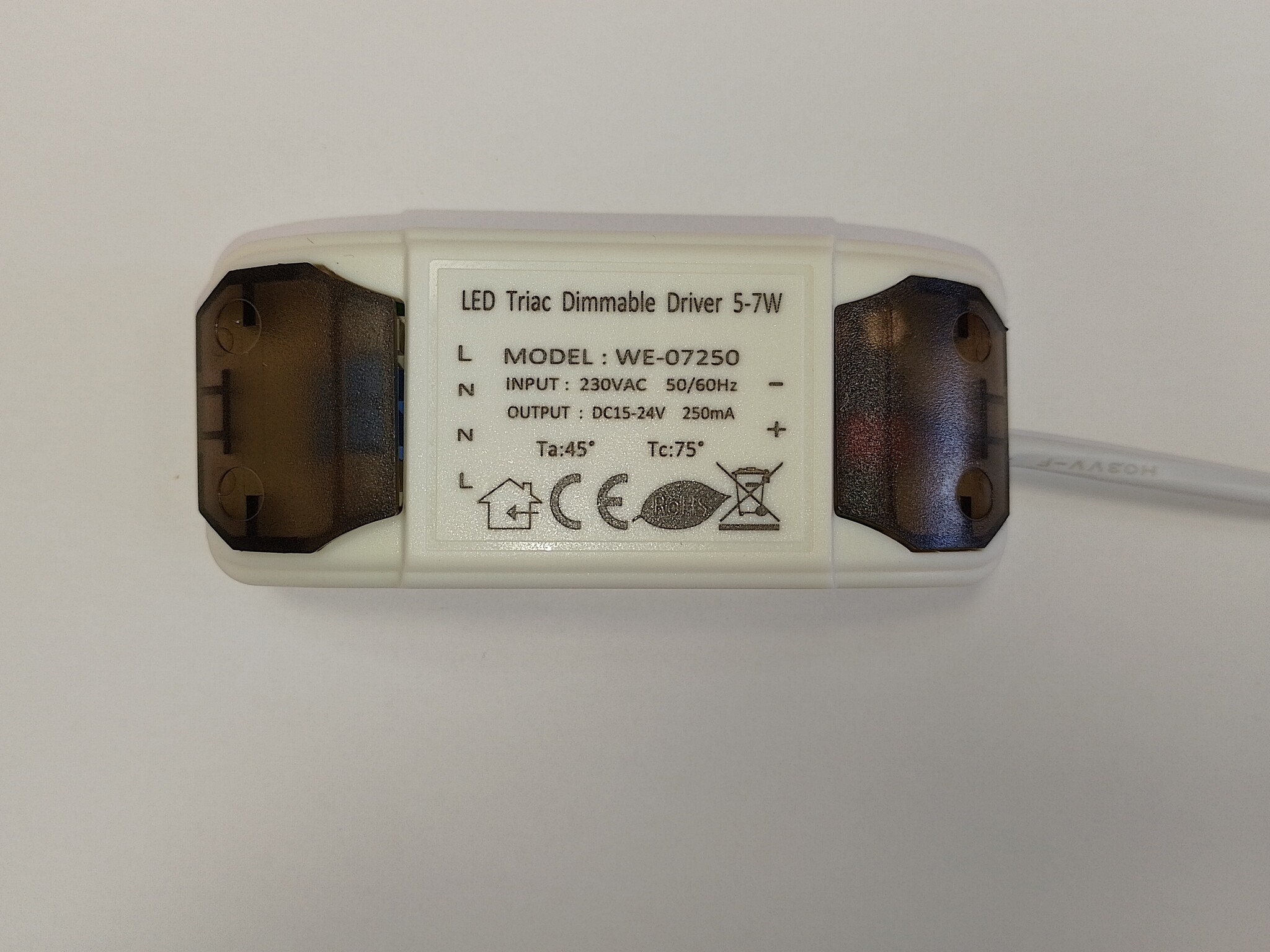 De STAR/Flat LED Spot wordt geleverd met externe flikkervrije voeding van 9x3x2,4cm(LxBxH). De voeding kan door middel van een mannetje/vrouwtjes connector losgekoppeld worden van het spotje. Ideaal wanneer er in eerste instantie het elektra wordt aangelegd wordt en daarna pas wordt geschilderd/gestuct. Hierdoor blijft het spotje en bedrading mooi schoon en heb je geen last van hangende elektra.