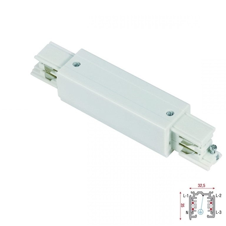 Met deze 3 Fase Rail aansluitblok midden is het mogelijk de 3 Fase rail 4 wire wit te voorzien van spanning. De aansluitblok kan gebruikt worden op de 1 meter, 1.5 meter, 2 meter en 3 meter rails.