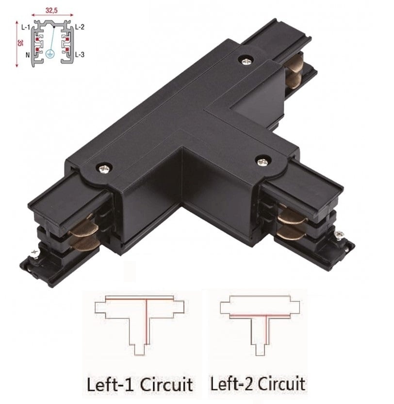 Universele 3 Fase Rail 4 Wire T-Verbinding - LINKS - BINNENLIJN en BUITENLIJN - Zwart